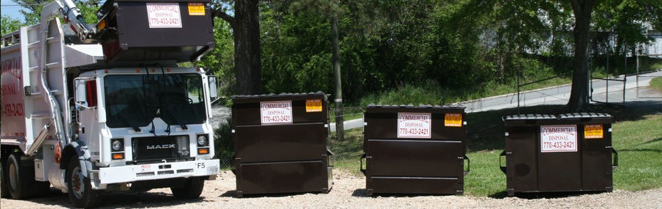 | Commercial Disposal provides roll-off dumpters, front loader dumpsters, and trash compactor services and proudly serves the greater Atlanta, Georgia (GA) areas of Acworth, Alpharetta, Austell, Buckhead, Cumberland, Dallas, Dunwoody, Fulton, Hiram, Kennesaw, Lithia Springs, Mableton, Marietta, Powder Springs, Roswell, Sandy Springs, Smyrna, Vinings, Woodstock. We DO NOT provide WEEKLY residential trash service. |